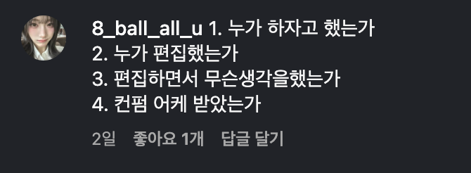 칭찬 댓글이 가득 달리기까지 했다!