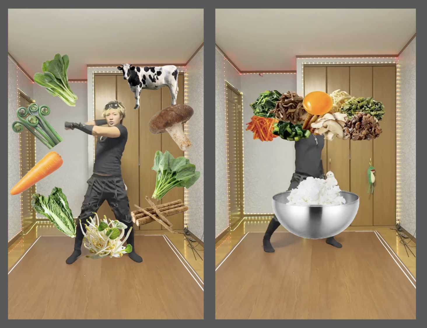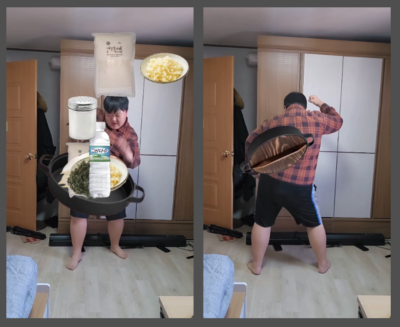 같은 음악에 맞춰 ‘비빔밥’을 만드는 영상과