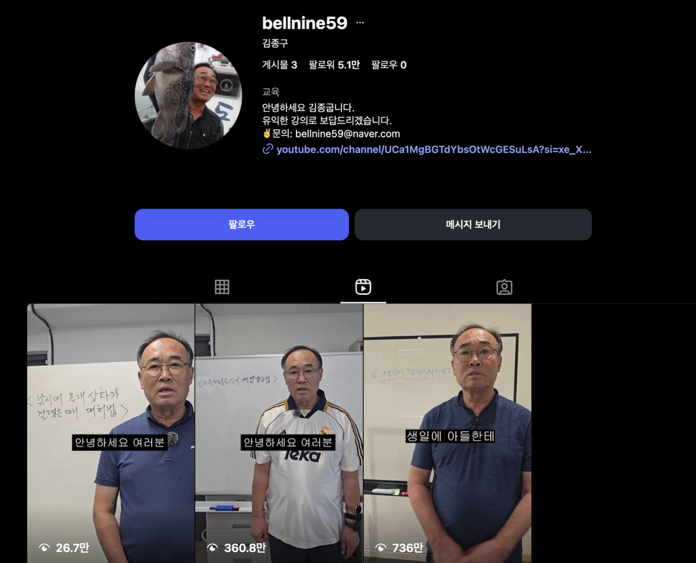 생긴 지 한 달도 안 된 계정인데 영상 3개로