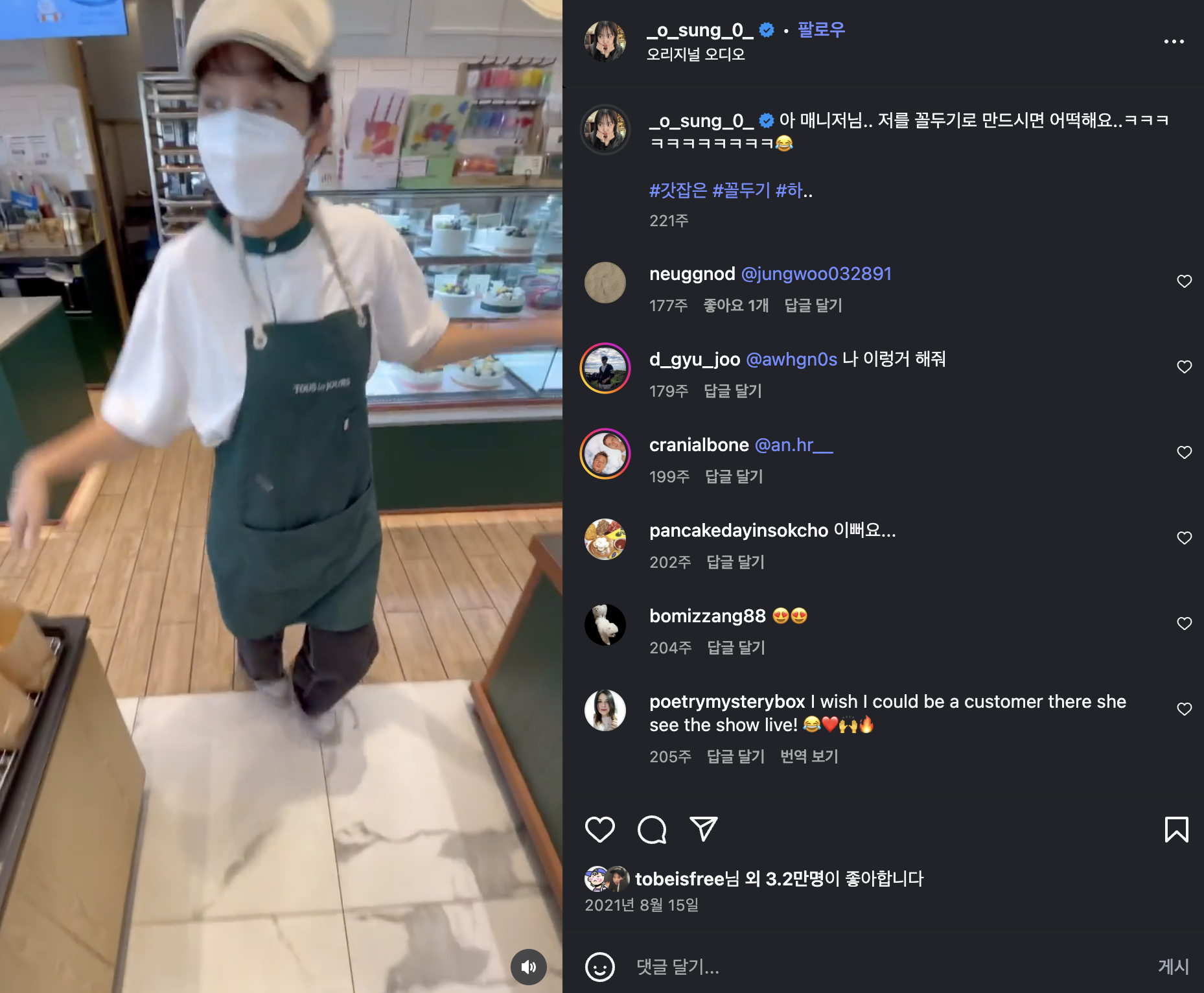 릴스 장인이기도 하다.
