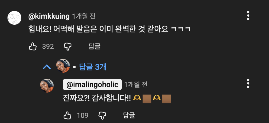 한글 댓글도 잘 읽고, 답변도 달아줘서,