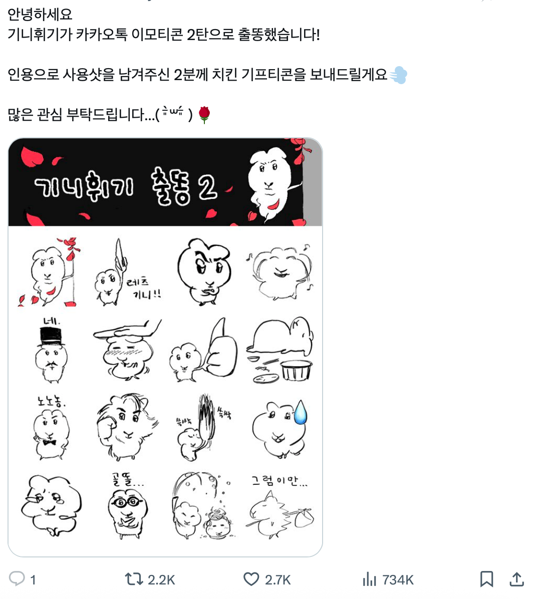 카카오톡 이모티콘으로도 출똥했다고 하니.
