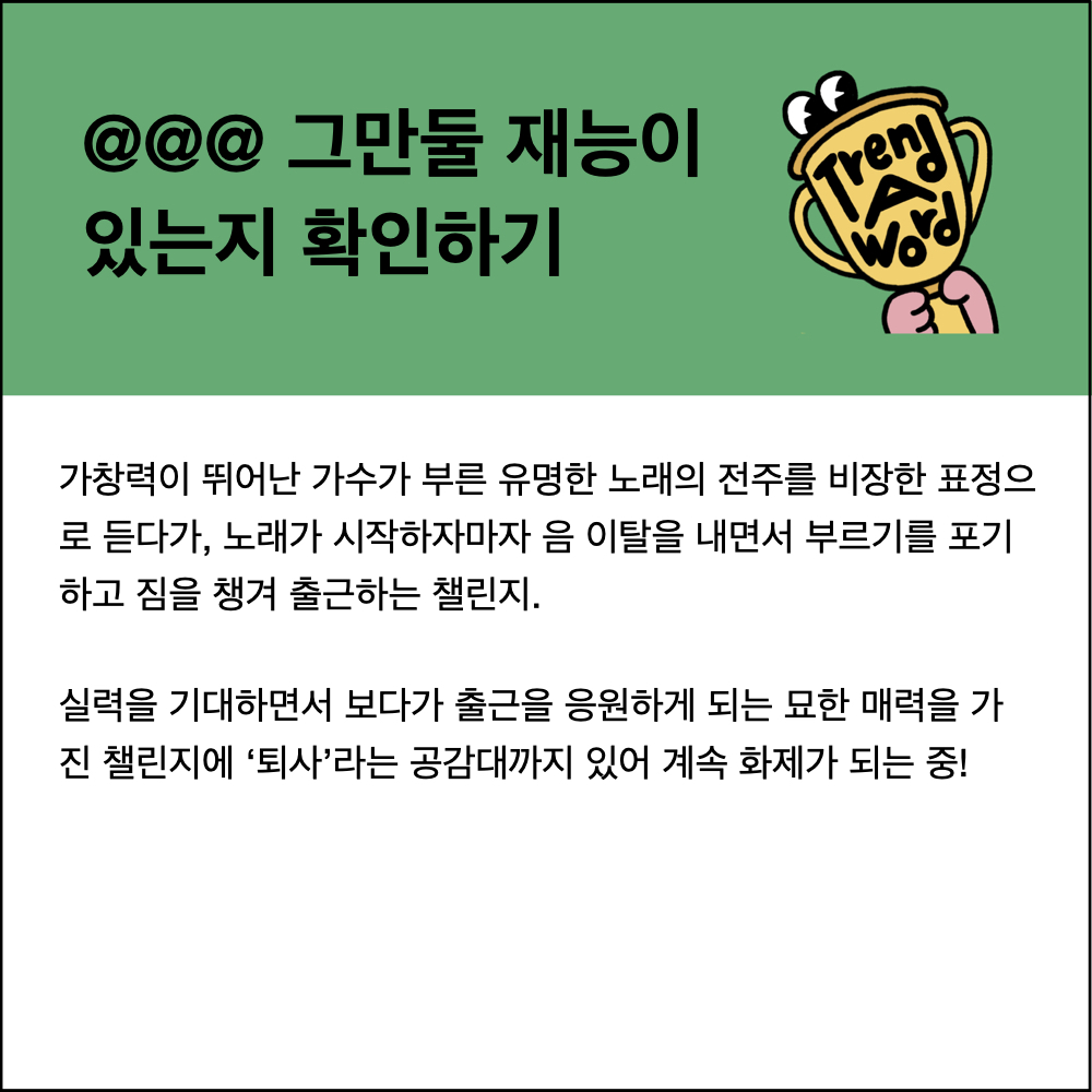 주 2회 화, 목 신조어 보내드리는 Trend A Word 구독 링크는 https://maily.so/trendaword 이구요!