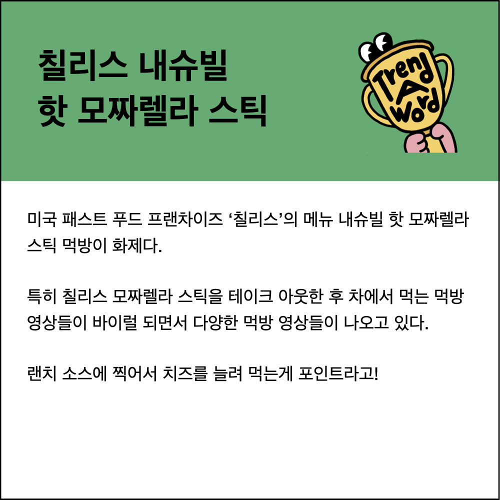 칠리스 치즈스틱 먹방이 유행이 된 것이다.